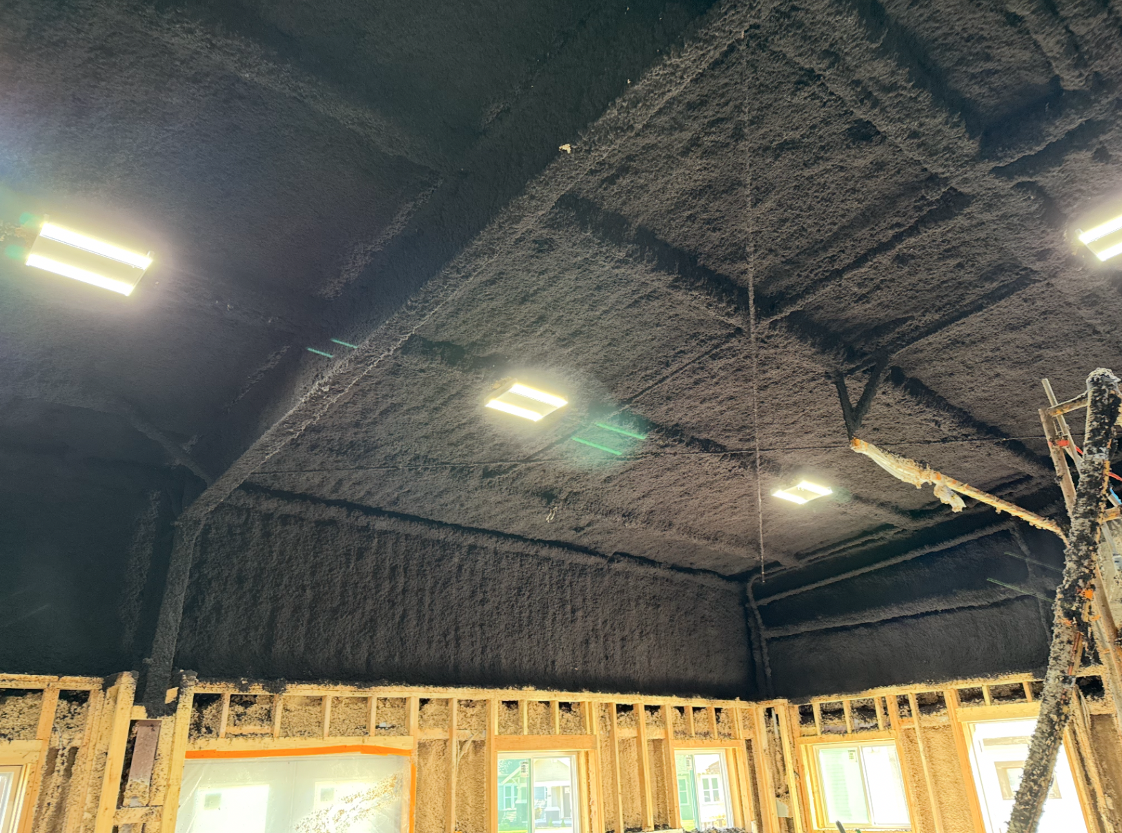 K-13 spray-applied cellulose insulation is the go-to solution for projects requiring both thermal and acoustic control in large, open spaces. It’s commonly used in commercial, industrial, and institutional buildings where insulation is applied directly to exposed ceilings and structural surfaces. K-13 provides outstanding performance while also contributing to a clean, modern look—and it’s made from natural, sustainable materials.